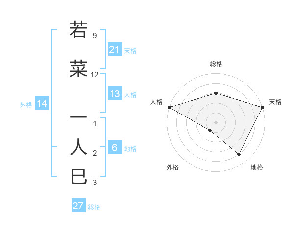 若菜 一人巳さんを姓名の画数から五運を鑑定