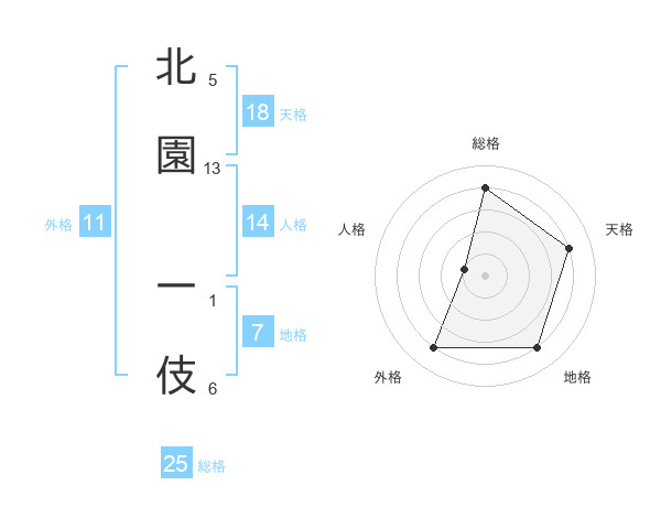 北園 一伎さんの総格は25画の4点!