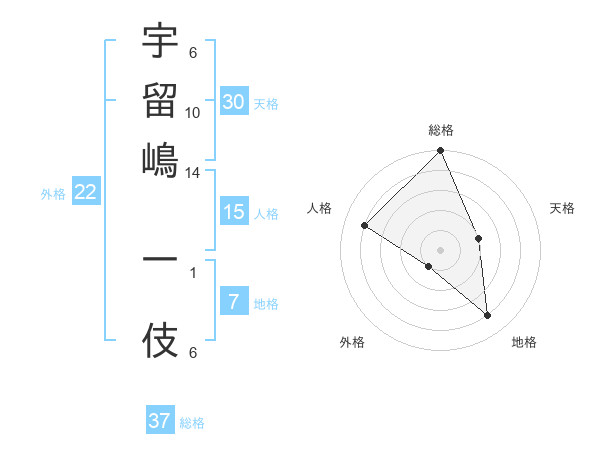 宇留嶋 一伎さんを姓名の画数から五運を鑑定