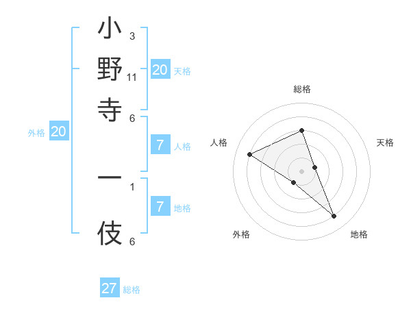 小野寺 一伎さんの総格は27画の3点!