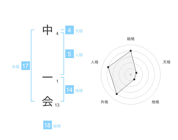 中 一会さんの総格は18画の4点!