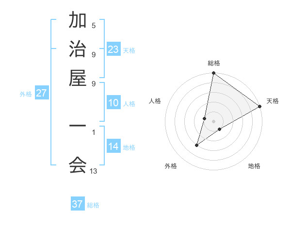 加治屋 一会さんを姓名の画数から五運を鑑定