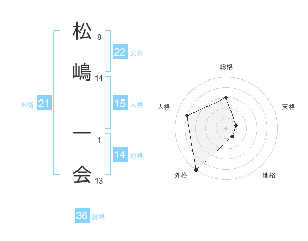 松嶋 一会さんの外格は21画の5点!