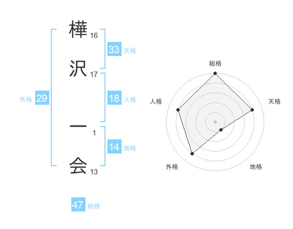 樺沢 一会さんを姓名の画数から五運を鑑定