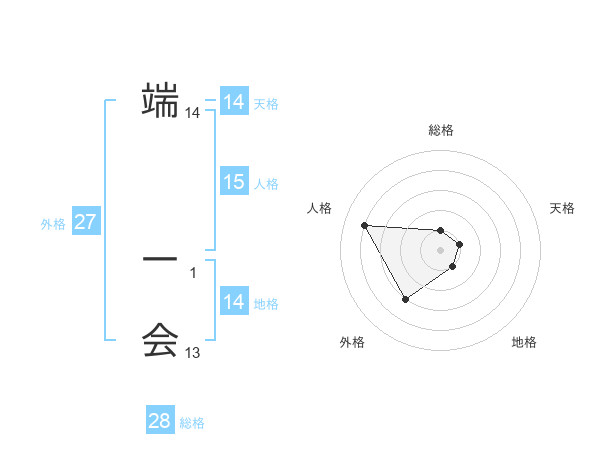 端 一会さんの天格は14画の1点!