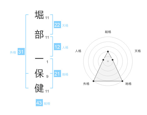 堀部 一保健さんを姓名の画数から五運を鑑定