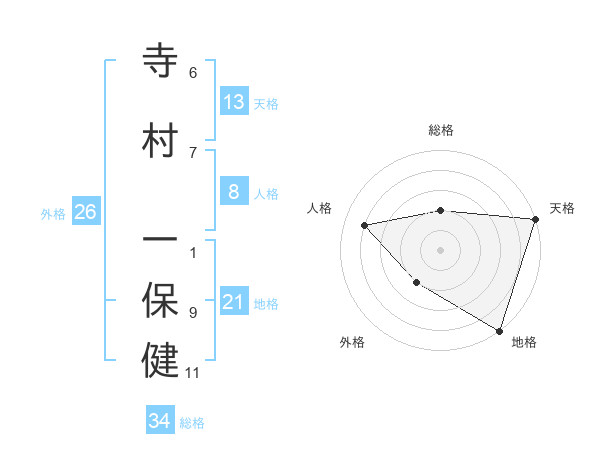 寺村 一保健さんの地格は21画の5点!
