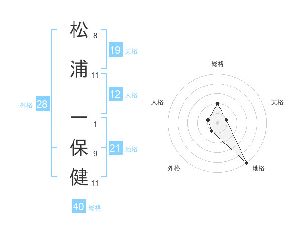 松浦 一保健さんの総格は40画の2点!