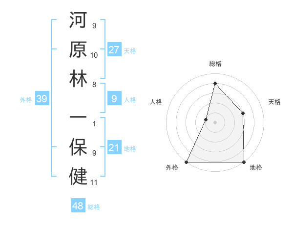 河原林 一保健さんを姓名の画数から五運を鑑定