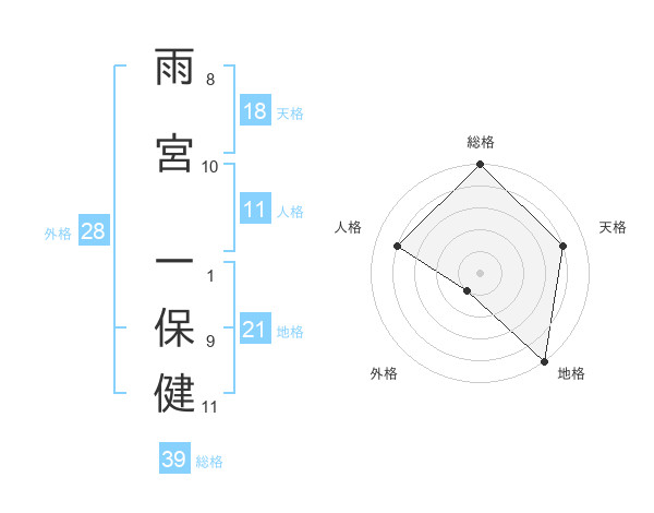 雨宮 一保健さんを姓名の画数から五運を鑑定