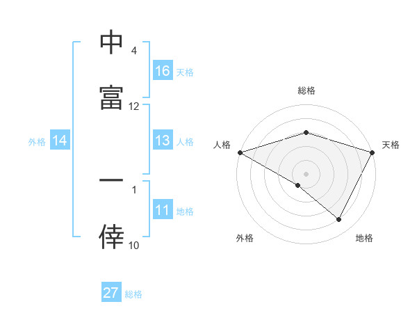 中富 一倖さんの総格は27画の3点!