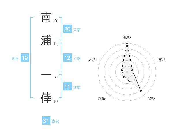南浦 一倖さんを姓名の画数から五運を鑑定