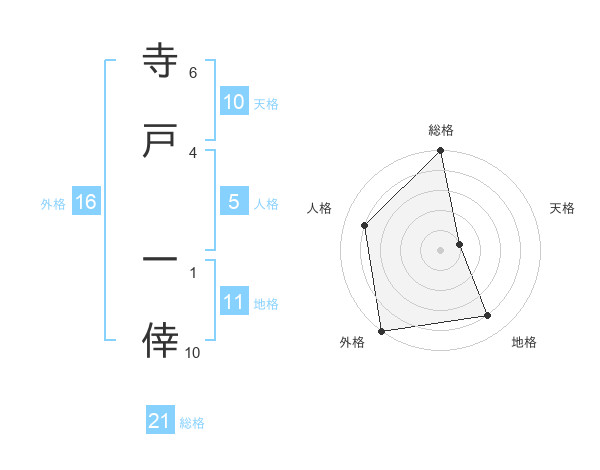 寺戸 一倖さんの総格は21画の5点!