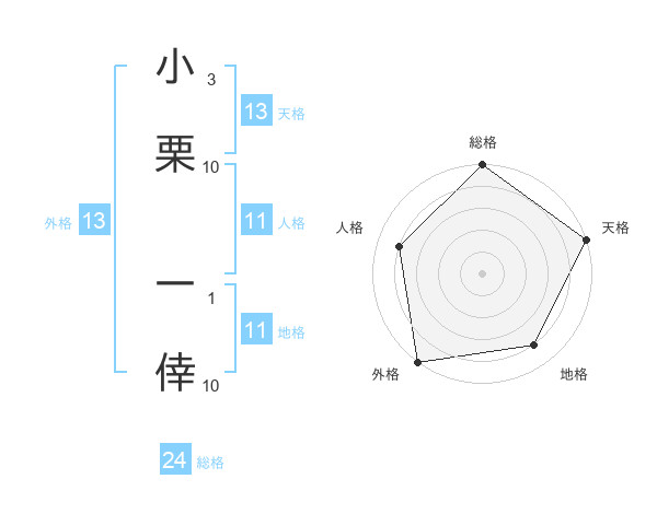 小栗 一倖さんの外格は13画の5点!