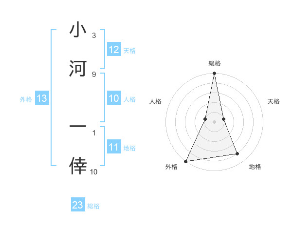 小河 一倖さんの外格は13画の5点!