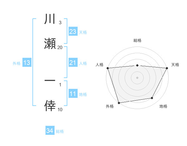 川瀬 一倖さんの外格は13画の5点!