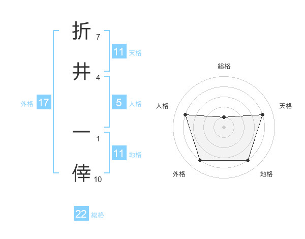 折井 一倖さんの総格は22画の1点!