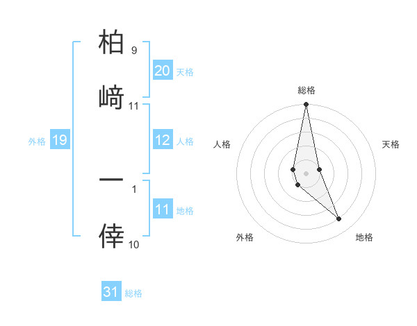 柏﨑 一倖さんの総格は31画の5点!