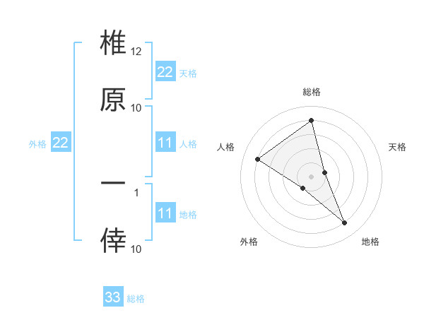 椎原 一倖さんの外格は22画の1点!