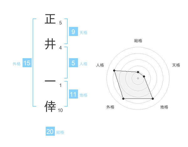 正井 一倖さんの総格は20画の1点!