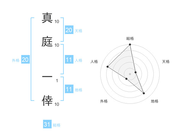 真庭 一倖さんを姓名の画数から五運を鑑定
