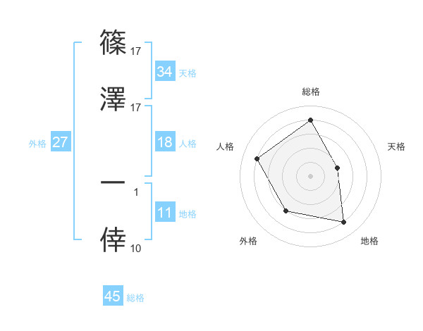 篠澤 一倖さんを姓名の画数から五運を鑑定