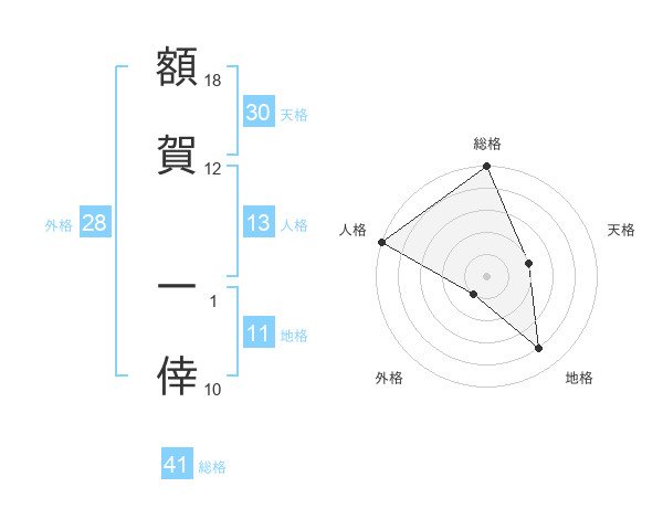 額賀 一倖さんの総格は41画の5点!