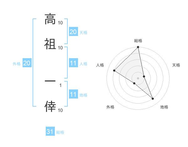 高祖 一倖さんを姓名の画数から五運を鑑定