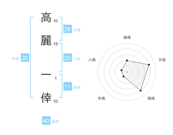 高麗 一倖さんの天格は29画の4点!