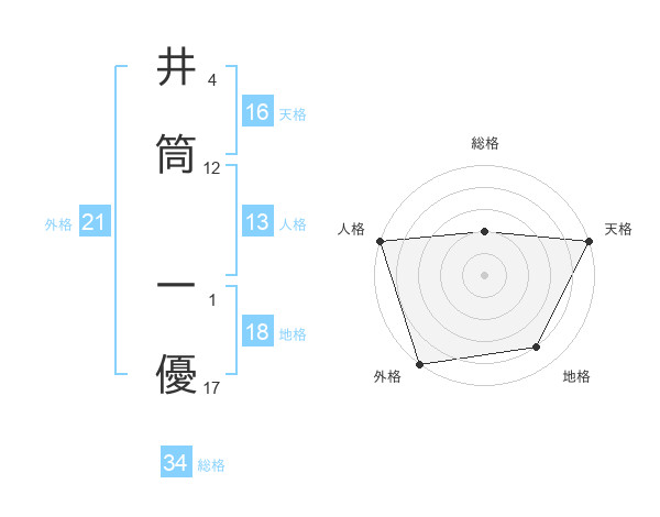 井筒 一優さんの天格は16画の5点!