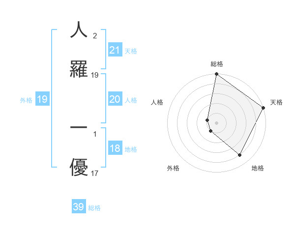 人羅 一優さんの天格は21画の5点!