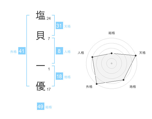 塩貝 一優さんを姓名の画数から五運を鑑定