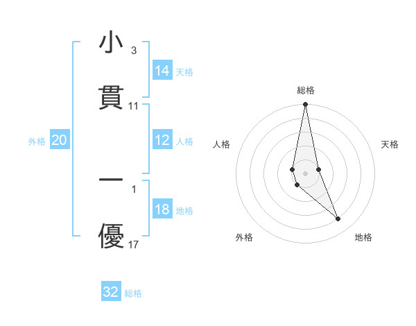 小貫 一優さんの総格は32画の5点!