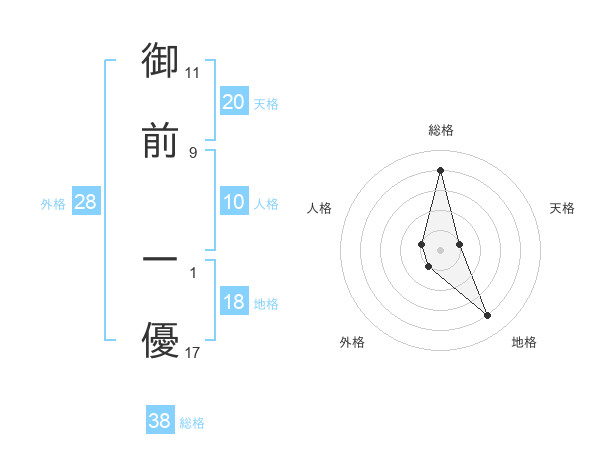 御前 一優さんの総格は38画の4点!
