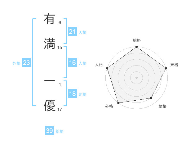 有満 一優さんの外格は23画の5点!