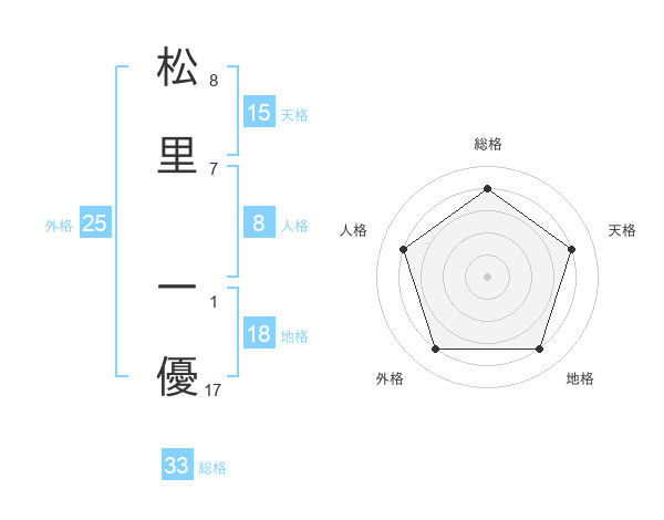 松里 一優さんの総格は33画の4点!