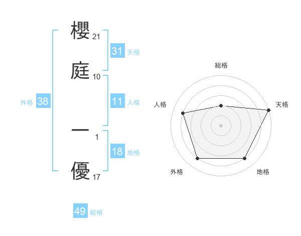 櫻庭 一優さんの天格は31画の5点!