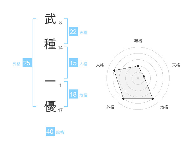 武種 一優さんの外格は25画の4点!