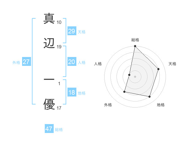 真辺 一優さんの総格は47画の5点!