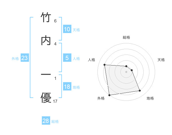 竹内 一優さんの外格は23画の5点!