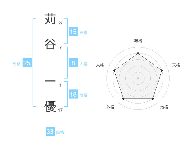 苅谷 一優さんを姓名の画数から五運を鑑定