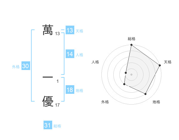 萬 一優さんの天格は13画の5点!