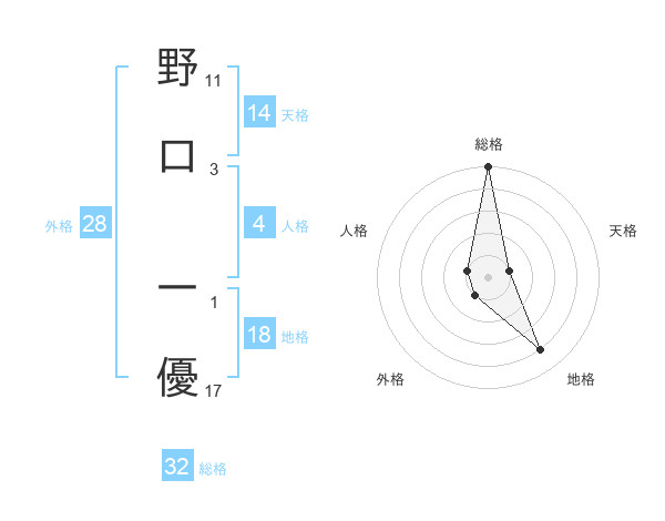 野口 一優さんの地格は18画の4点!