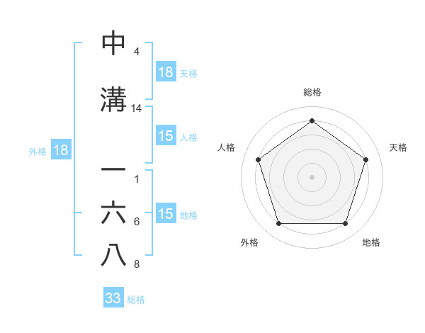 中溝 一六八さんを姓名の画数から五運を鑑定