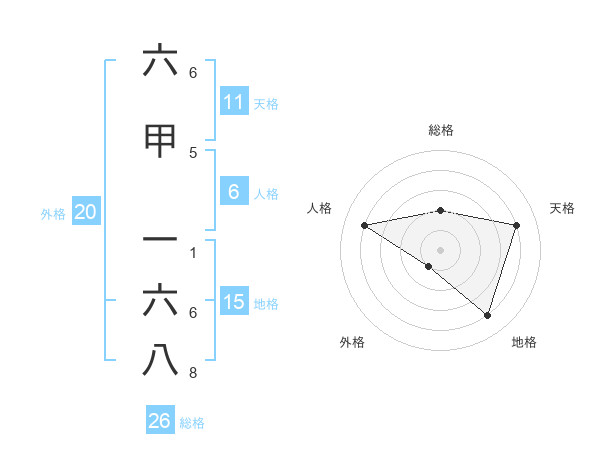 六甲 一六八さんを姓名の画数から五運を鑑定