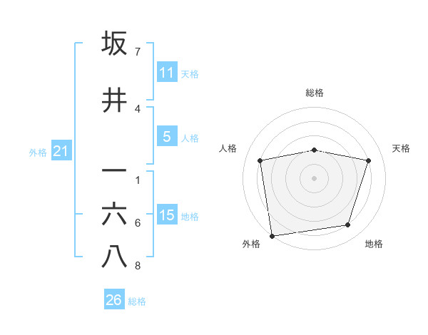 坂井 一六八さんを姓名の画数から五運を鑑定