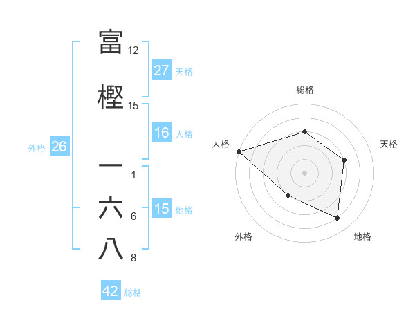 富樫 一六八さんを姓名の画数から五運を鑑定