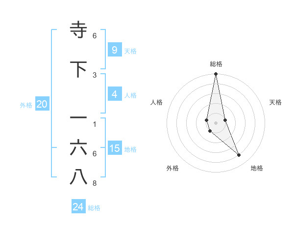 寺下 一六八さんの総格は24画の5点!