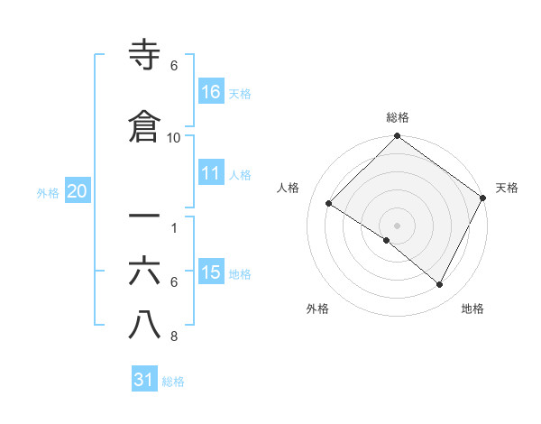 寺倉 一六八さんの総格は31画の5点!