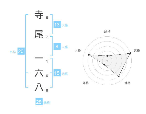 寺尾 一六八さんの総格は28画の1点!